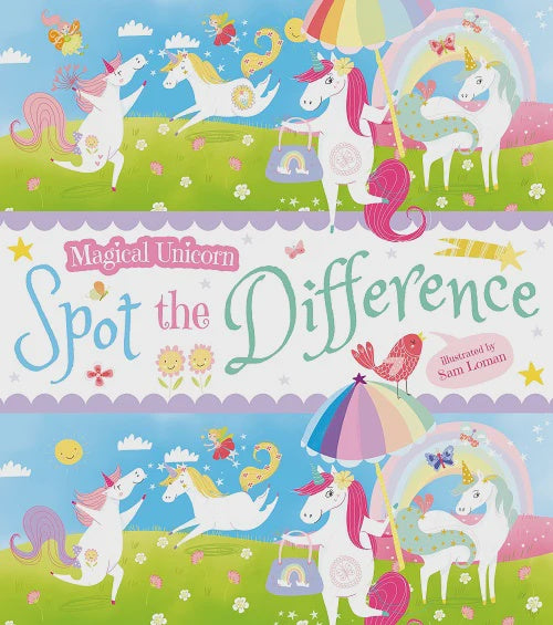 This enchanting book is packed with more than 50 adorable spot-the-difference puzzles! Kids will have fun finding the differences between seemingly identical pictures of unicorns swimming, dancing, watching fireworks, and engaging in other fanciful activities with their magical friends - a fairy godmother, princess, pixies, and other amazing creatures. Answers appear at the end