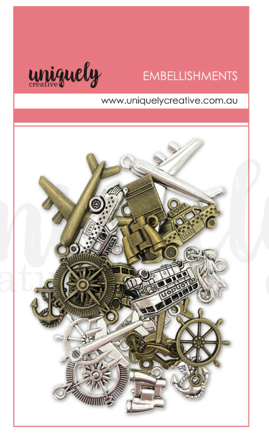 Metal Assorted Travel Embellishments 20 Pce